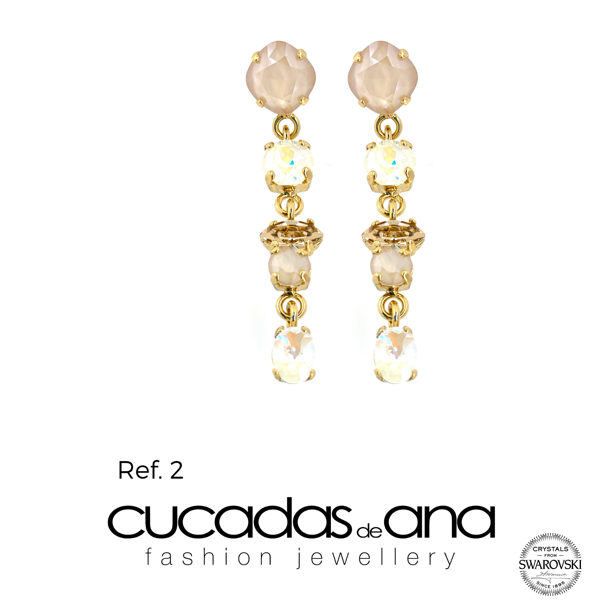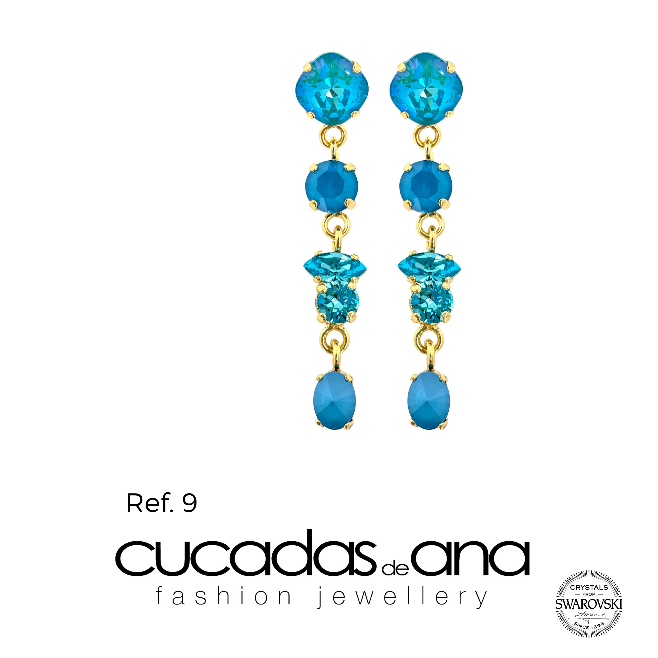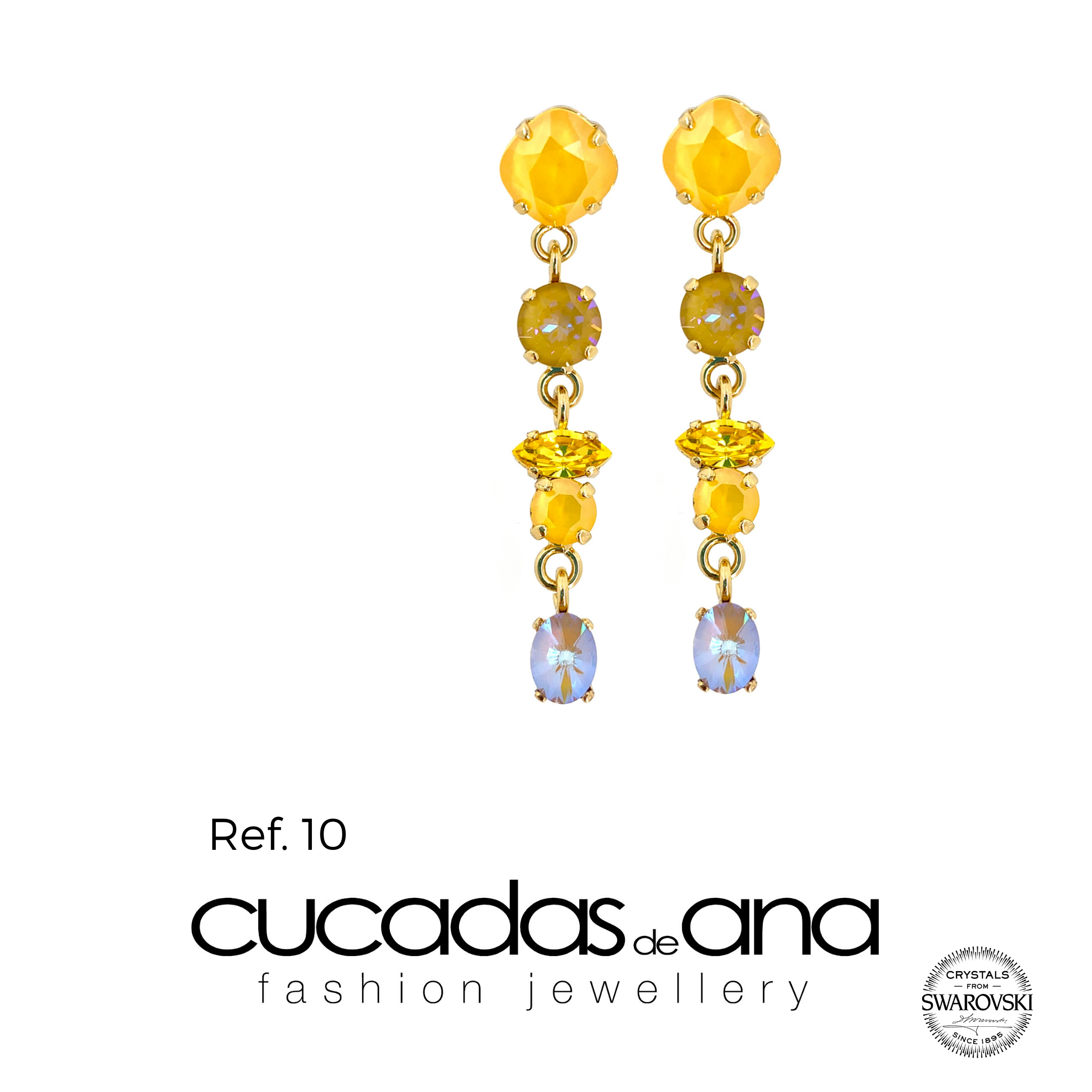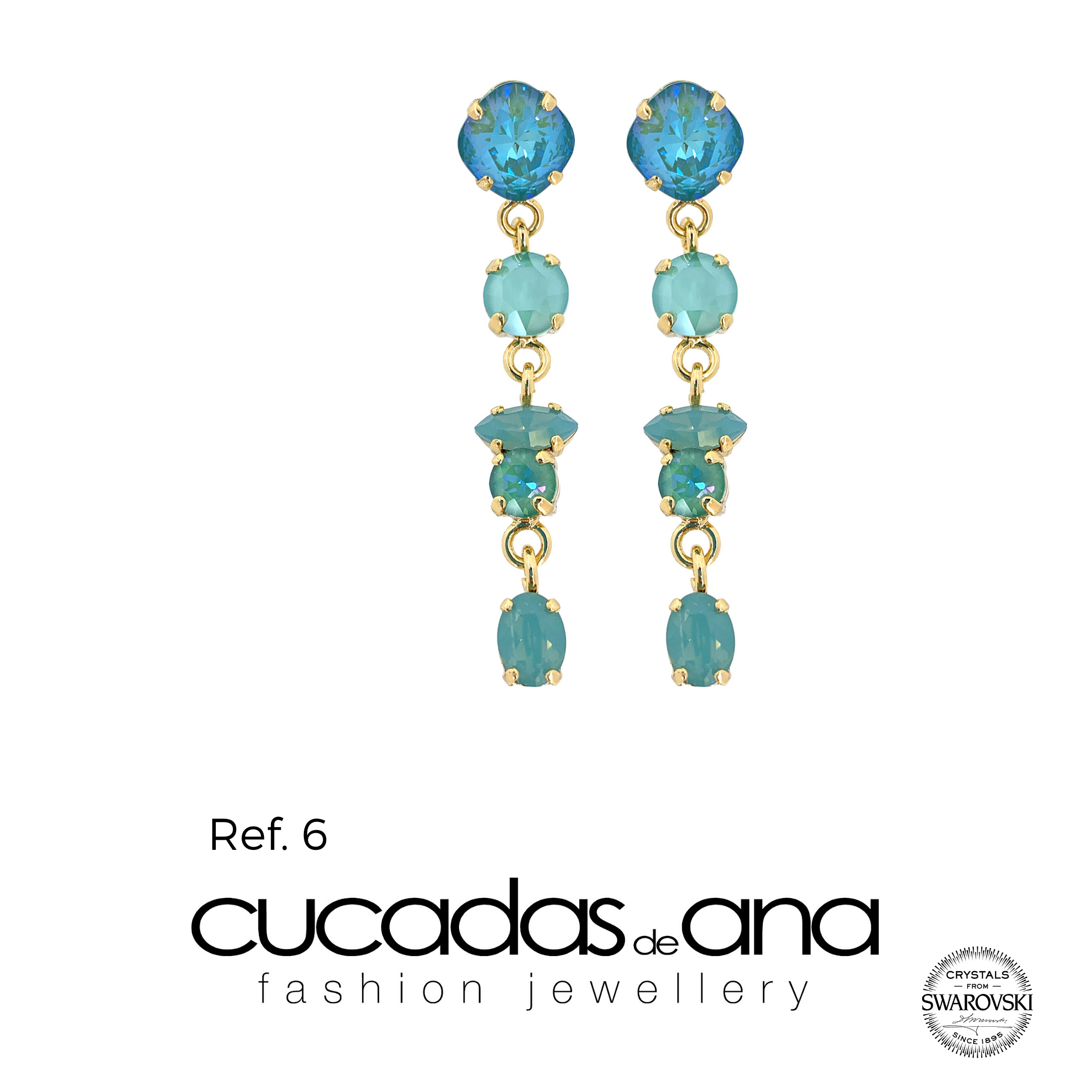 Pendientes realizados en diferentes tonalidades, todos ellos correspondientes a la gama de colores Swarovski Crystals, ideales para cualquier evento: casual, novia o para ser la invitada perfecta.