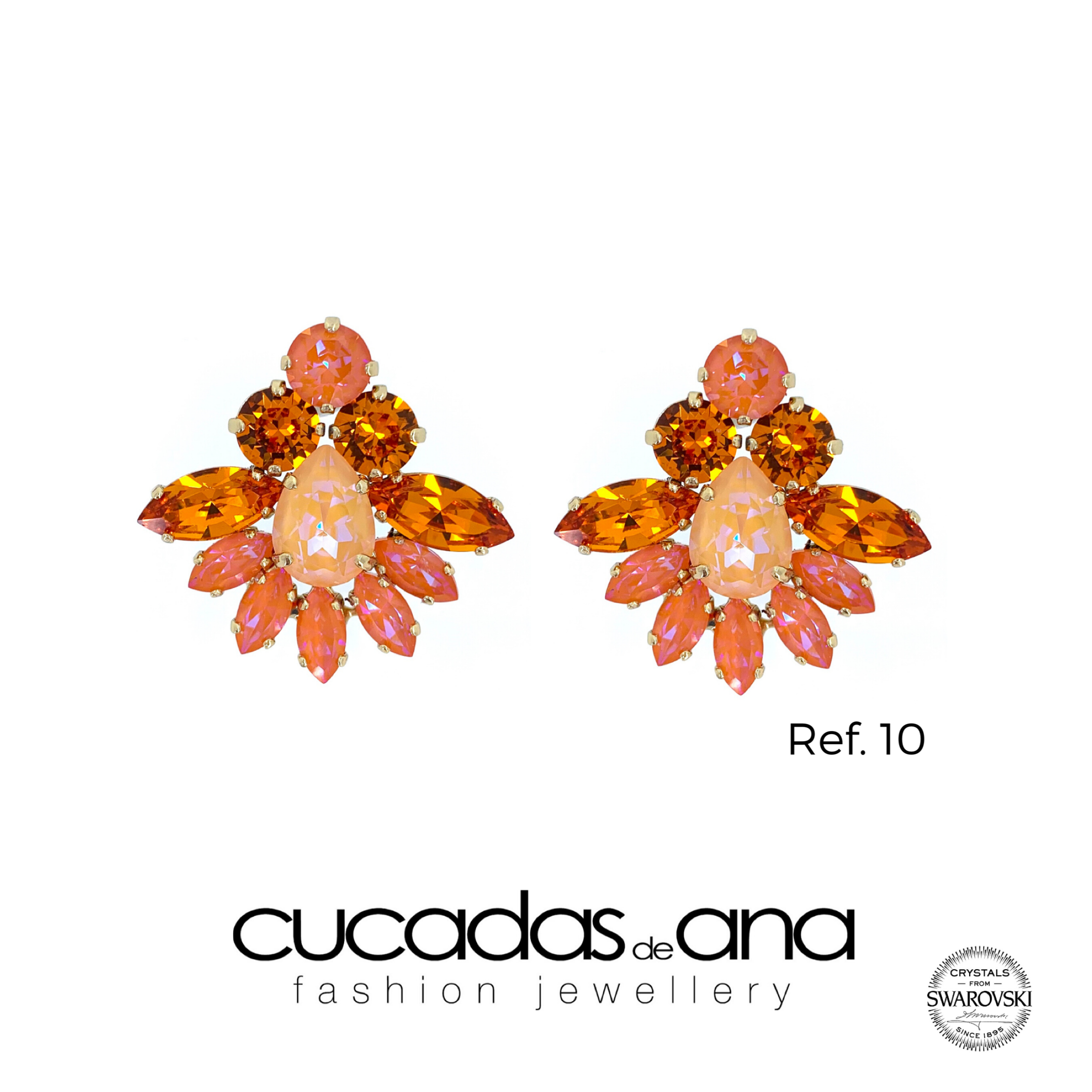 Pendientes realizados en diferentes tonalidades, todos ellos correspondientes a la gama de colores Swarovski Crystals, ideales para cualquier evento: casual, novia o para ser la invitada perfecta.